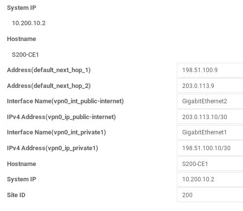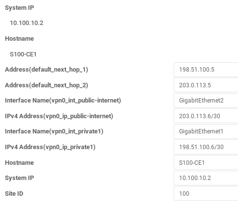 The system IDs are only referenced within the SD-WAN fabric, so they can be any valid unicast IP address, even if it’s a public address that you don’t own. This allows you to potentially get more creative with the numbering scheme. The system ID is similar in concept to a loopback address or a routing protocol router ID, but the chosen address cannot be assigned to any interfaces on the SD-WAN device, and must be unique across the entire fabric.