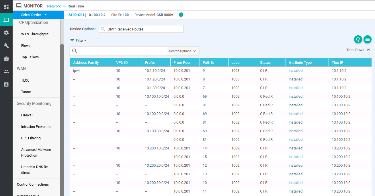 You can further verify from vManage by going to Monitor > Network: