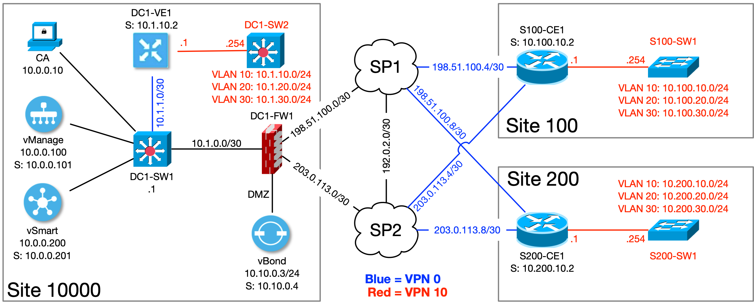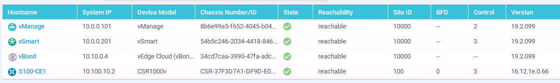 - vManage: 10.0.0.101